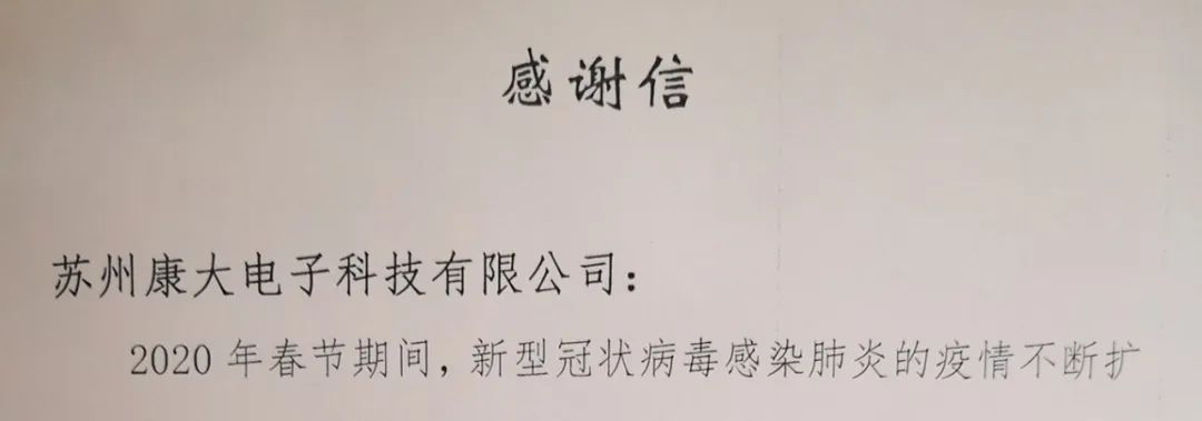 苏州康大电子科技有限公司通过邮寄的方式向事业部赠送20套医用防护服。