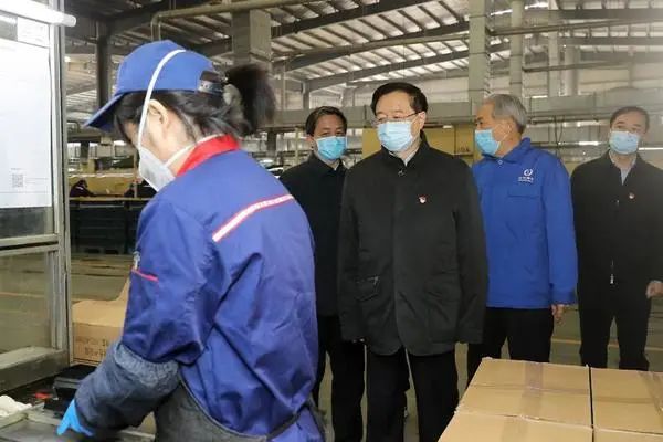 2月20日,河南省委书记王国生到天能济源万洋公司实地调研了解疫情防控和复工复产各项措施的落实情况。济源示范区党工委书记、市委书记张战伟等领导陪同调研。