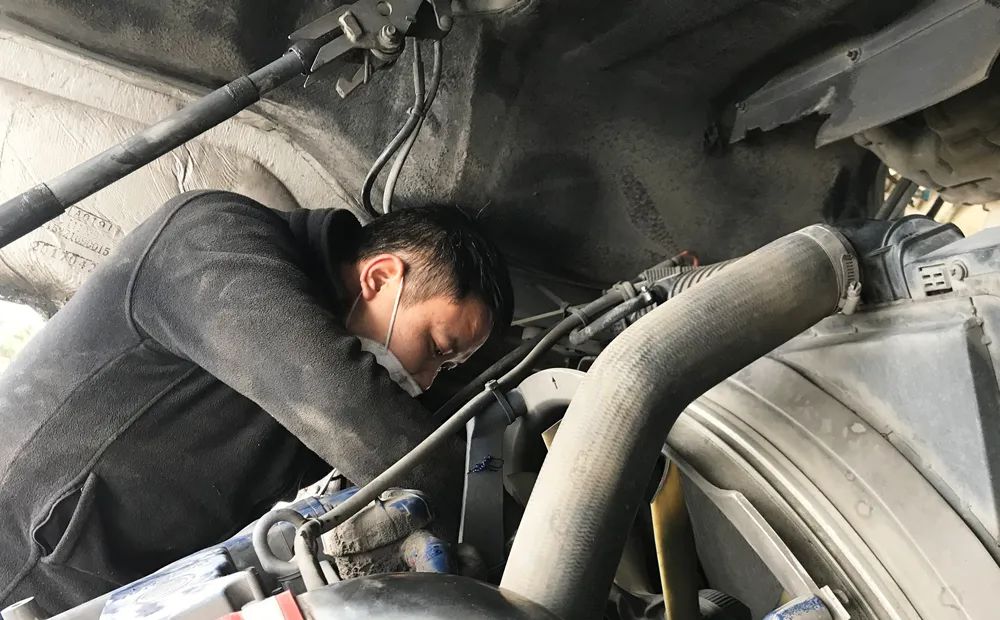 重庆服务人员正在为一辆牵引车做检查