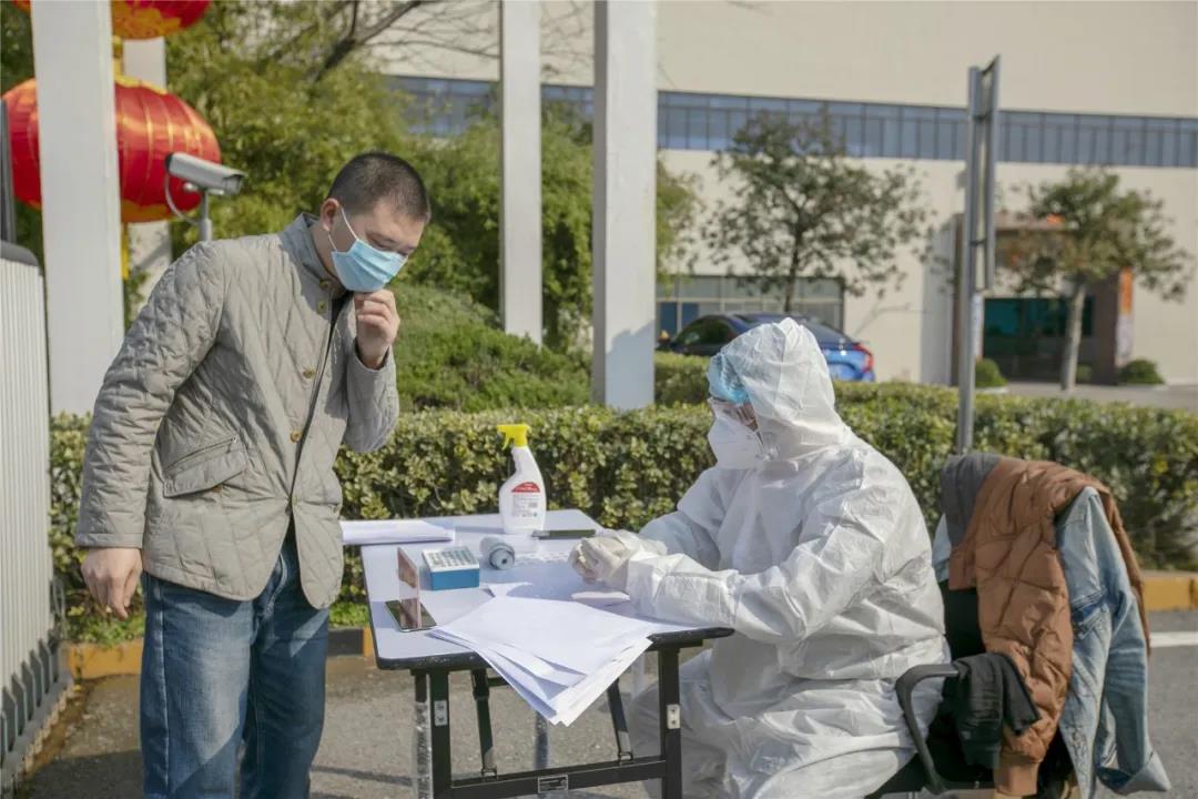 园区大门,是每天上下班人员必经之处,也是园区防疫工作的第一道防线。