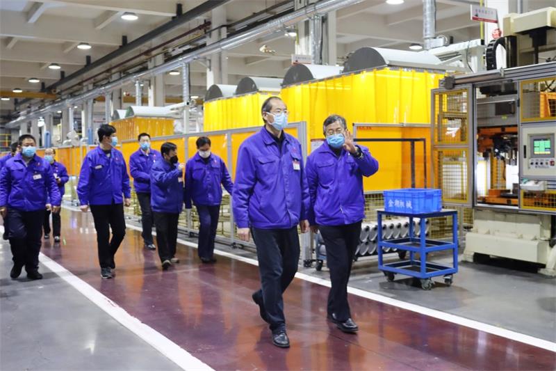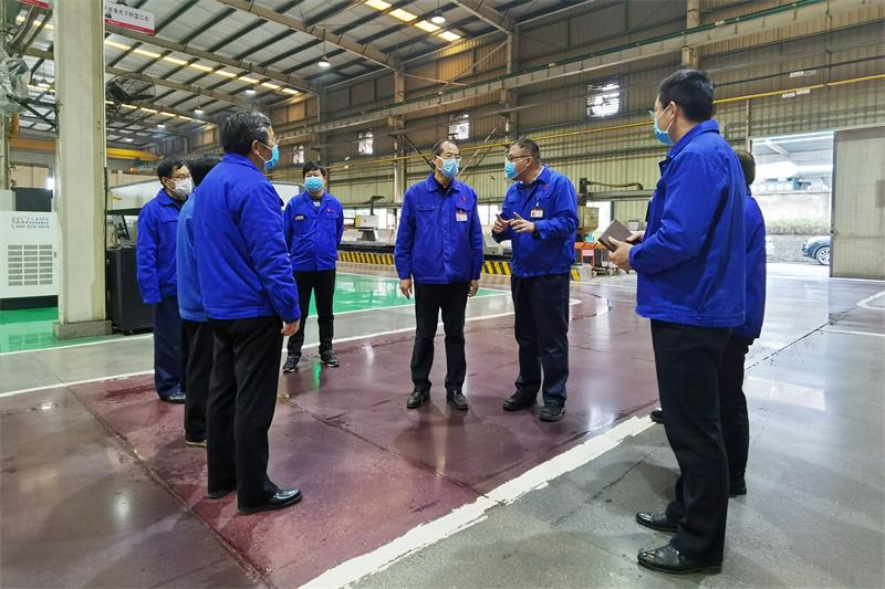 张德进一行抵达和安机械后,首先严格遵守防疫期间入厂管理规定,测量体温后方才进厂。随后深入到金铆车间、电器车间、备结车间等生产一线,对员工复工率、防疫物资的储备和发放、疫情防控的主要措施、供应商及物流方面遇到的问题及其影响、外部市场动态等情况进行了深入了解,并对和安机械公司近期的疫情防控和生产经营等方面工作予以了详细指导。