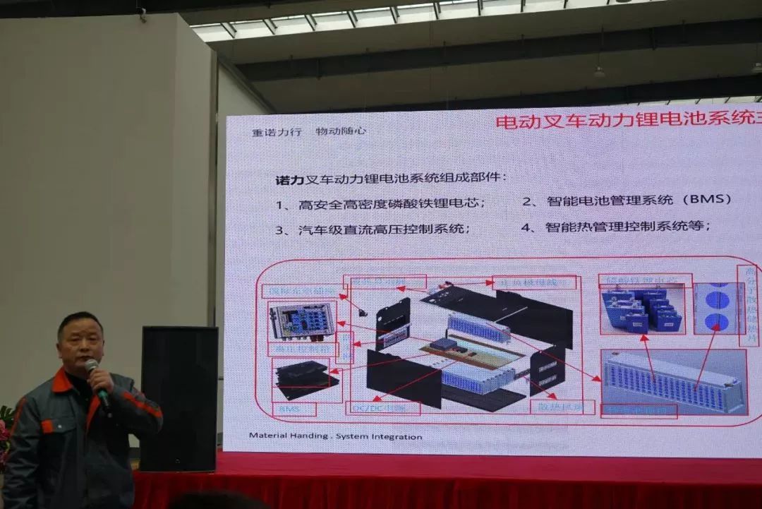 会上,总经理助理罗曼从天罡系列的研发初衷以及产品技术角度详细介绍了天罡系列的优势性能。电器研发经理明国胜从锂电新能源叉车相较于传统铅酸和内燃叉车的优势出发,向广大经销商介绍了诺力全系列锂电叉车。市场部经理朱礼斌以品牌战略和市场发展趋势为主题作了分享。