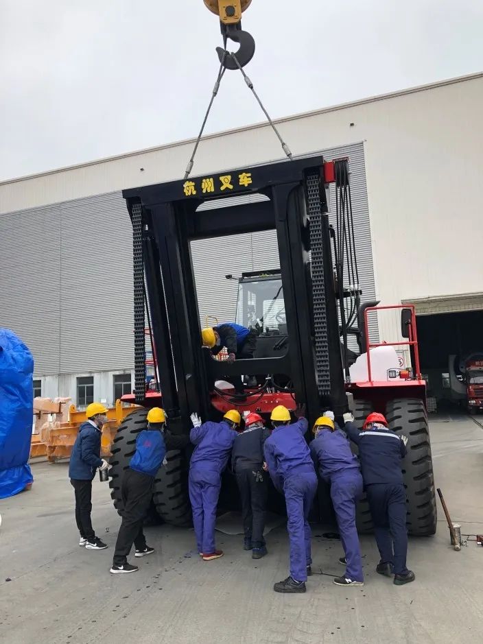 三月伊始,经过公司上下一心紧密配合,攻坚克难,杭叉集团2台40吨重装叉车陆续奔赴抵达国内某风电制造企业基地,如期顺利交付,不负所望。