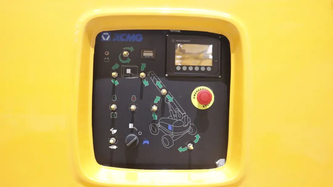 转台和平台分别设置控制箱,实现对底盘、转台、臂架和平台的控制。实现发动机的预热、起动、熄火和转速控制;发动机机油压力、水温、检测及报警;底盘的转向和行驶控制;转台的回转、臂架变幅和伸缩控制;平台的回转控制;平台的载重检测等功能。通过发动机状态监测及启动保护装置、车体倾斜报警装置、超载报警装置、高速行驶限制装置,行驶、回转操作报警等多项措施,实现全方位安全保护。