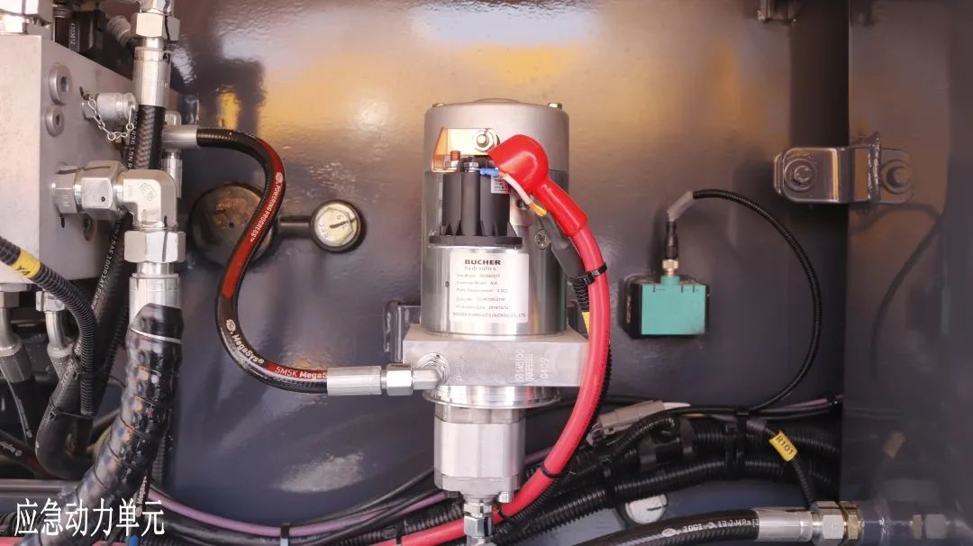 闭式泵+变量泵形式,由发动机直接驱动为液压系统提供动力;上车液压系统为变量泵负载敏感系统,主要动作采用电液比例控制技术,可实现上车回转、臂架变幅、臂架伸缩以及工作平台摆动等功能;上车主阀为插装阀组,整车系统配液压油散热器。下车行走为闭式变量系统,4×4驱动型式,行走分为高低两档,可实现车桥平衡、转向等功能。配置应急动力单元,保证发动机或油泵故障时能收回臂架至行驶状态。