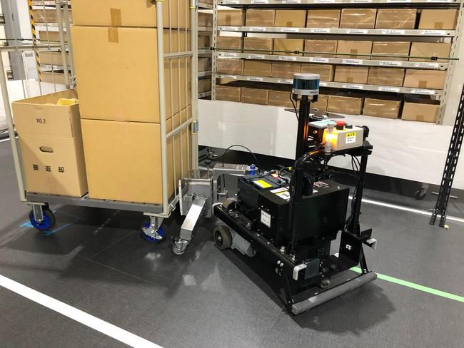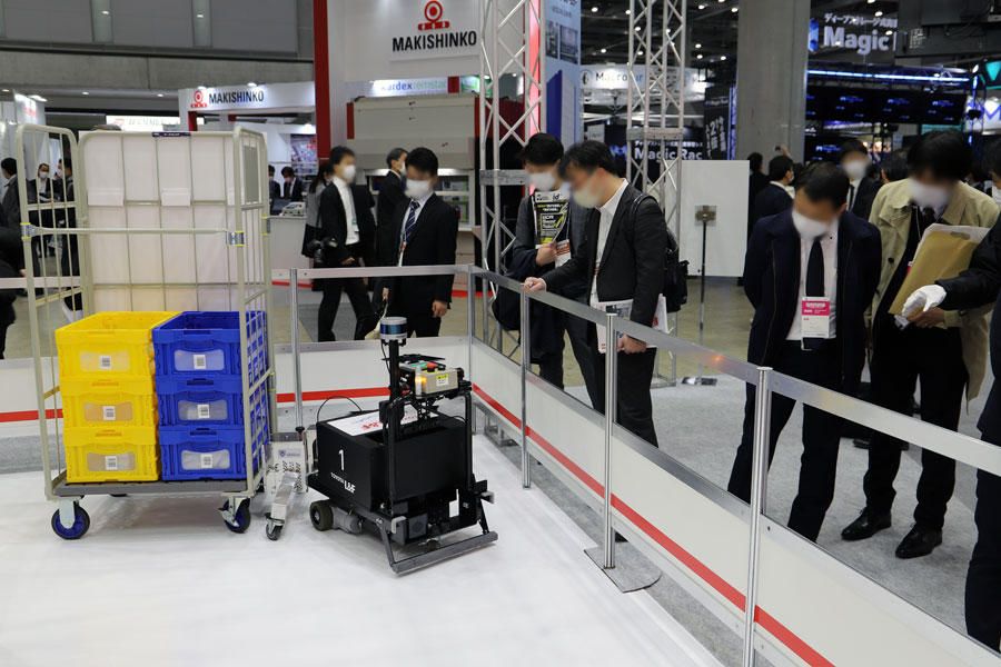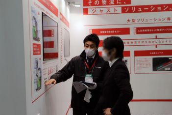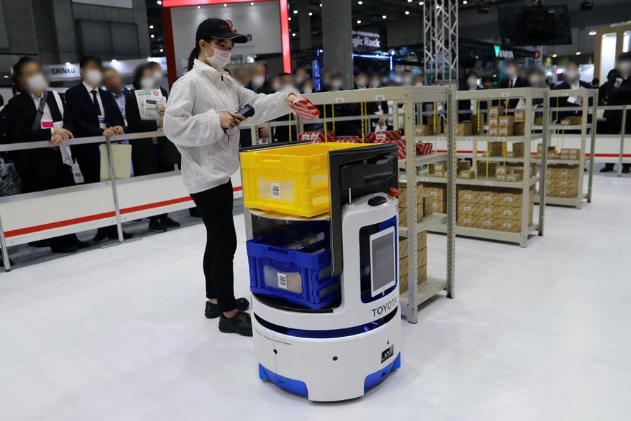 在展台中央进行的展示中,丰田叉车日本介绍了由2种AGV构筑的先进物流现场。