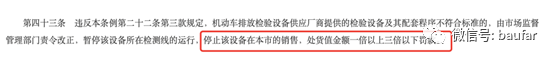 该条例针对制假、售假的相关排放产品及车载诊断管理系统的责罚金额,不再是仅仅零部件自身的制造及销售价格,而是与其匹配的整车售价的1-3倍。举例来说,去年安徽某知名车企因排放门事件,收到北京市生态环境局的行政处罚决定书,被罚1.7亿元。据了解,原因仅仅是作了OBD的技术屏蔽,一个OBD盒价值顶多才数百元,却按照在北京市场该类型汽车当年总销售量的3倍金额作了责罚。执行的就是该34条条例政策。更为恐怖的是,如果放在今年5月1日后被罚,按照三地区域协调机制的要求,就应该是5.1亿元人民币,而不是1.7亿人民币。高压之下,各类制造及销售造假验车神器的制造商、代理商、整车制造商应该尽快掉转方向,全力配合国家的治污大计,不要再参与制造、销售各类验车神器,避免遭受灭顶之灾。