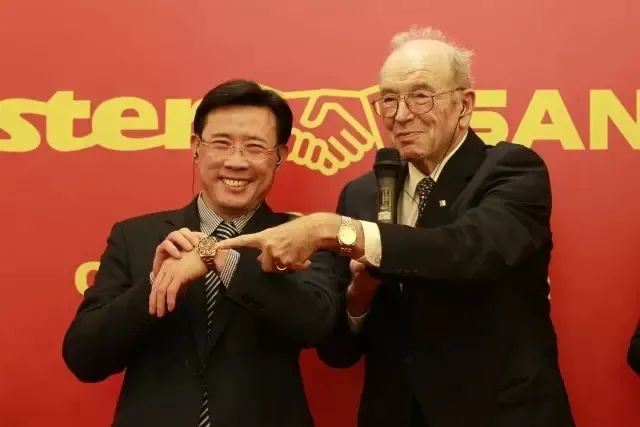 当天的发布会上,普茨迈斯特创始人卡尔·施莱西特,与三一集团董事长梁稳根互换手表。在追求理想的道路上,双方相互找到了志同道合的伙伴。