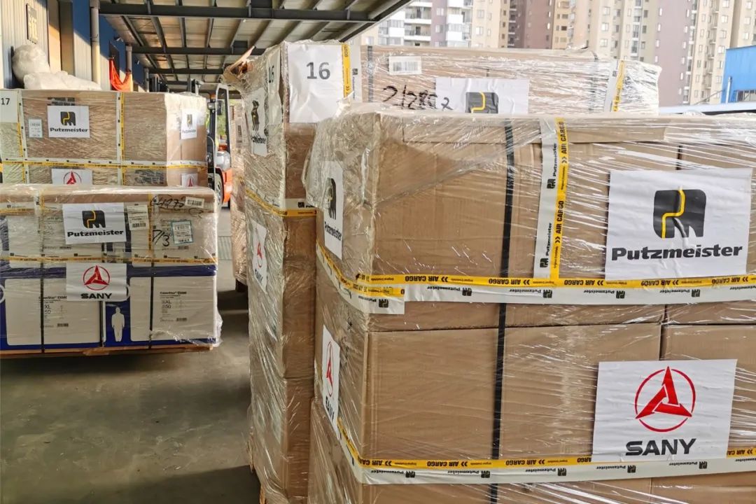 截至目前,三一欧洲公司、普茨迈斯特累计向国内发回口罩67618个,防护服15993个、护目镜7680个、一次性手套20万只,有力驰援国内。