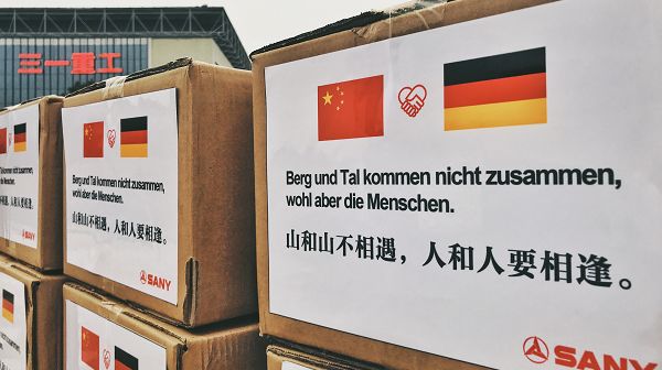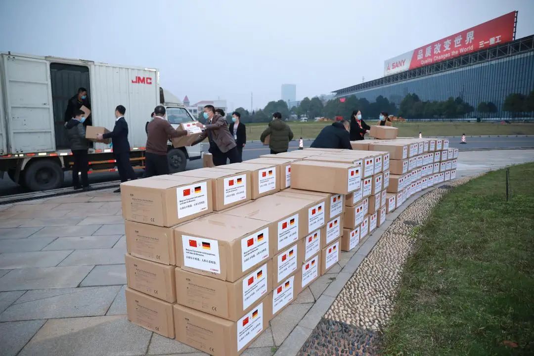 在国内疫情最严峻的时期,三一的德国伙伴们也第一时间捐钱捐物。