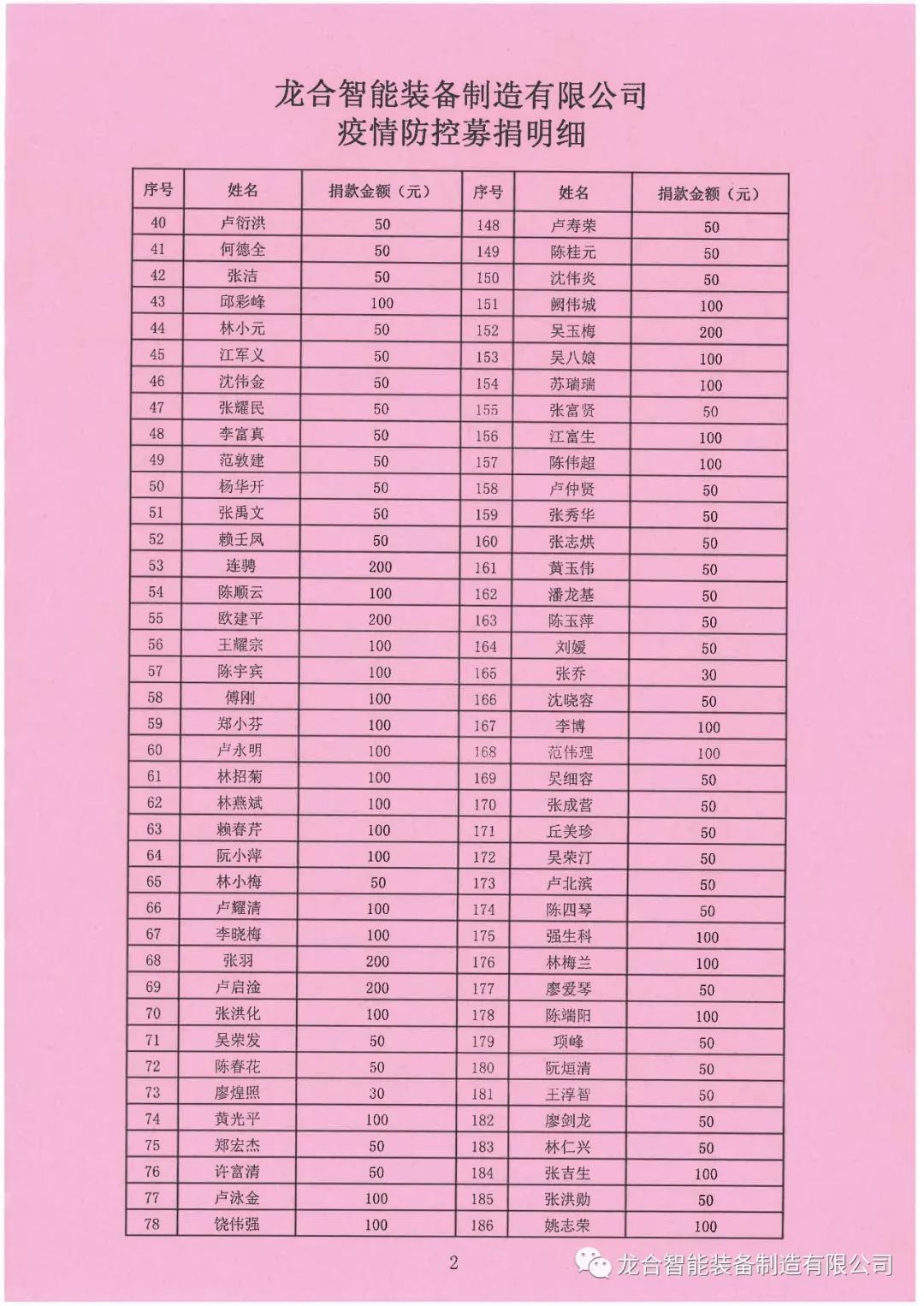 在此再一次诚挚的感谢为抗击疫情献出爱心的每一位员工,龙合智能也将继续在政府的指导下全力以赴参与疫情的防控工作,营造良好的疫情防控氛围,同时加快恢复生产。龙合智能有信心在党组织和公司领导的带领下做到百分百安全生产,众志成城,打赢疫情防控阻击战,打好生产经营攻坚战。