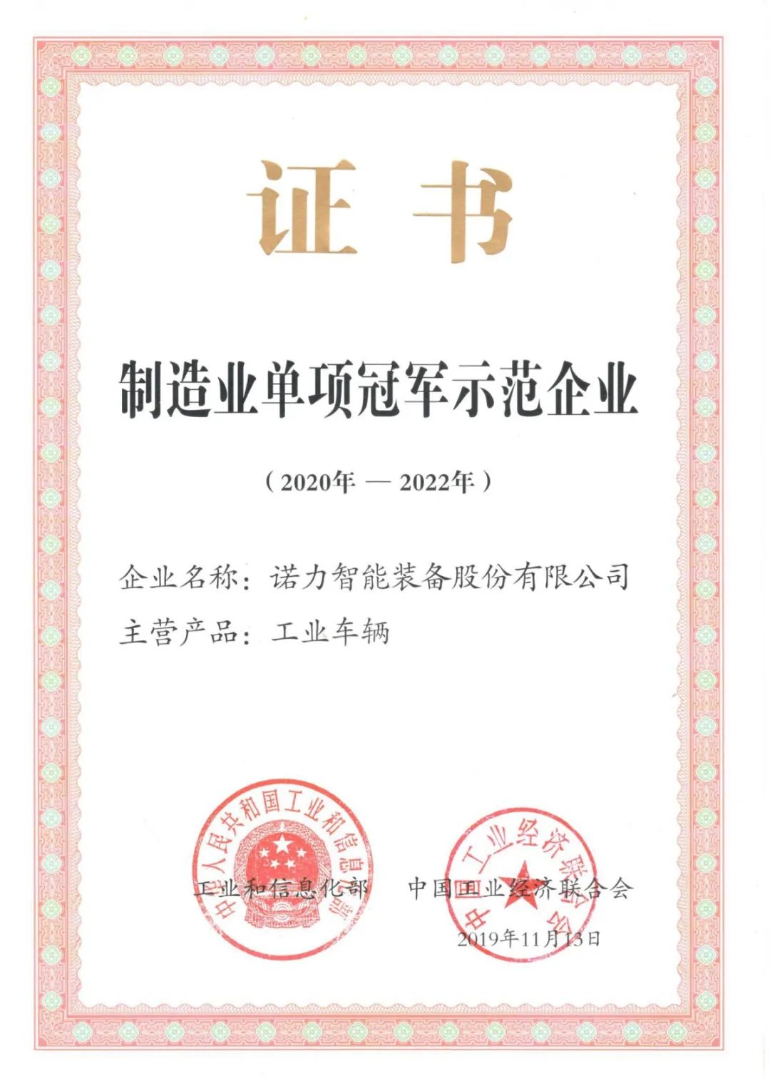 3月16日,浙江省制造业高质量发展大会上,浙江发布了制造业亩均效益领跑企业、“雄鹰行动”培育企业、制造业单项冠军企业、“隐形冠军”企业、浙江省制造业创新中心等五类制造业先进单位名单。诺力股份上榜“制造业单项冠军企业”和“浙江省隐形冠军企业”,收获“双冠”荣誉。