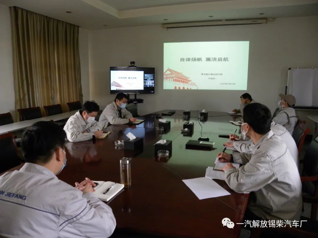 3月16日下午,一场生动的廉洁教育活动在青岛与无锡改开展,为进一步强化重点岗位人员党风廉政建设和反腐倡廉教育工作,青岛整车事业部纪委组织了空中廉洁教育活动,由纪委副书记于建民通过welink软件在线视频的方式对无锡改主管及以上人员上了一堂廉洁教育课,无锡改装车厂李龙云总经理带领销售人员、采购人员等共计22人参加教育活动。