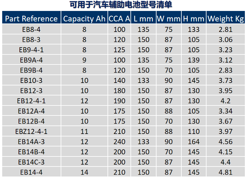理士汽车辅助电池无论是在质量、性能还是规格方面都符合OE标准,是配备增强型辅助电池系统车辆的理想选择。