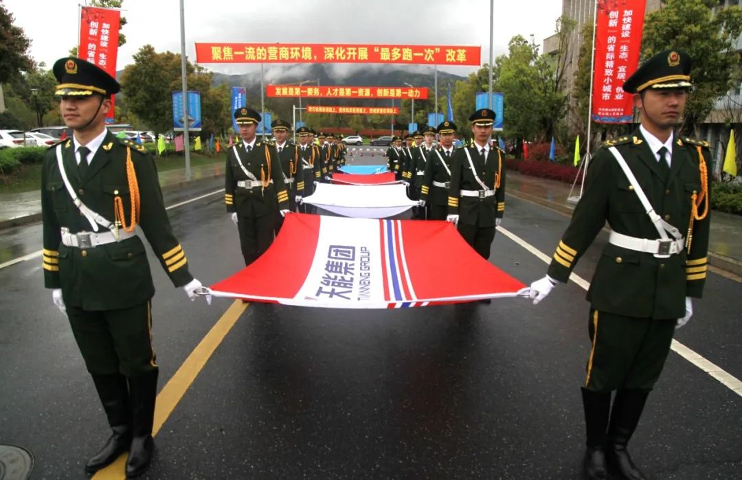 好雨知时节,当春乃发生。今天(3月28日)上午,在绵绵的春雨中,煤山镇政府的市民广场上举行了一场别开生面的功勋企业升旗仪式。伴随着嘹亮的歌声,步伐整齐的仪仗队护送着功勋企业旗帜缓缓入场,长兴县人大常委会党组书记高胜华与天能集团董事长张天任一道将天能的司旗升起。高高飘扬的旗帜,见证着天能作为功勋企业,助力煤山发展的责任与担当。