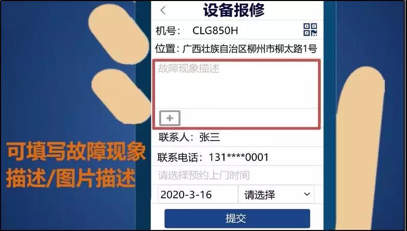 根据提示依次填写故障描述、联系方式等相关信息,确认好联系信息及选择上门服务时间后,点击提交即可完成预约报修。