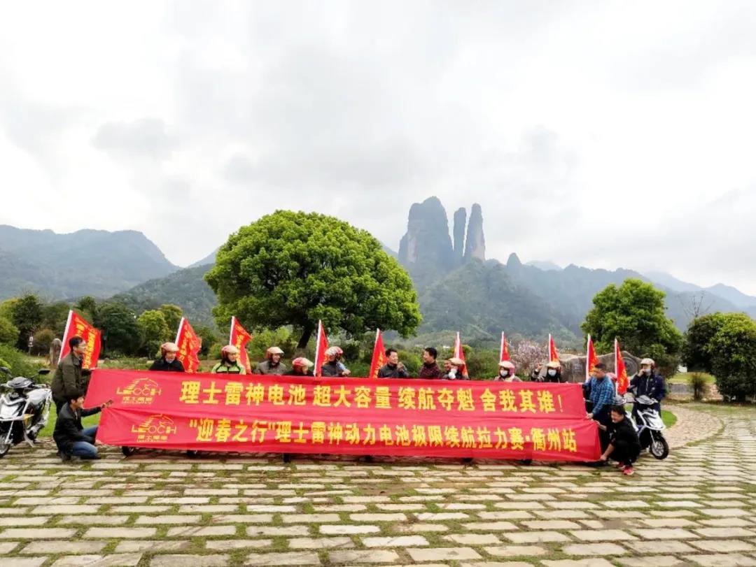 经过两个多小时的全速前进,大家终于陆续抵达比赛的终点——江郎山,此时,队伍已经行驶了近60公里。在江郎山下的广场上,大家遥望云烟雾绕的山峰,感叹于美景的同时,对雷神电池的优秀续航能力赞不绝口,齐声喊出了“雷神电池就是好!”的质量宣言。
