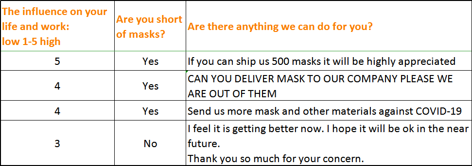 (代理商对疫情问卷调查的部分反馈)