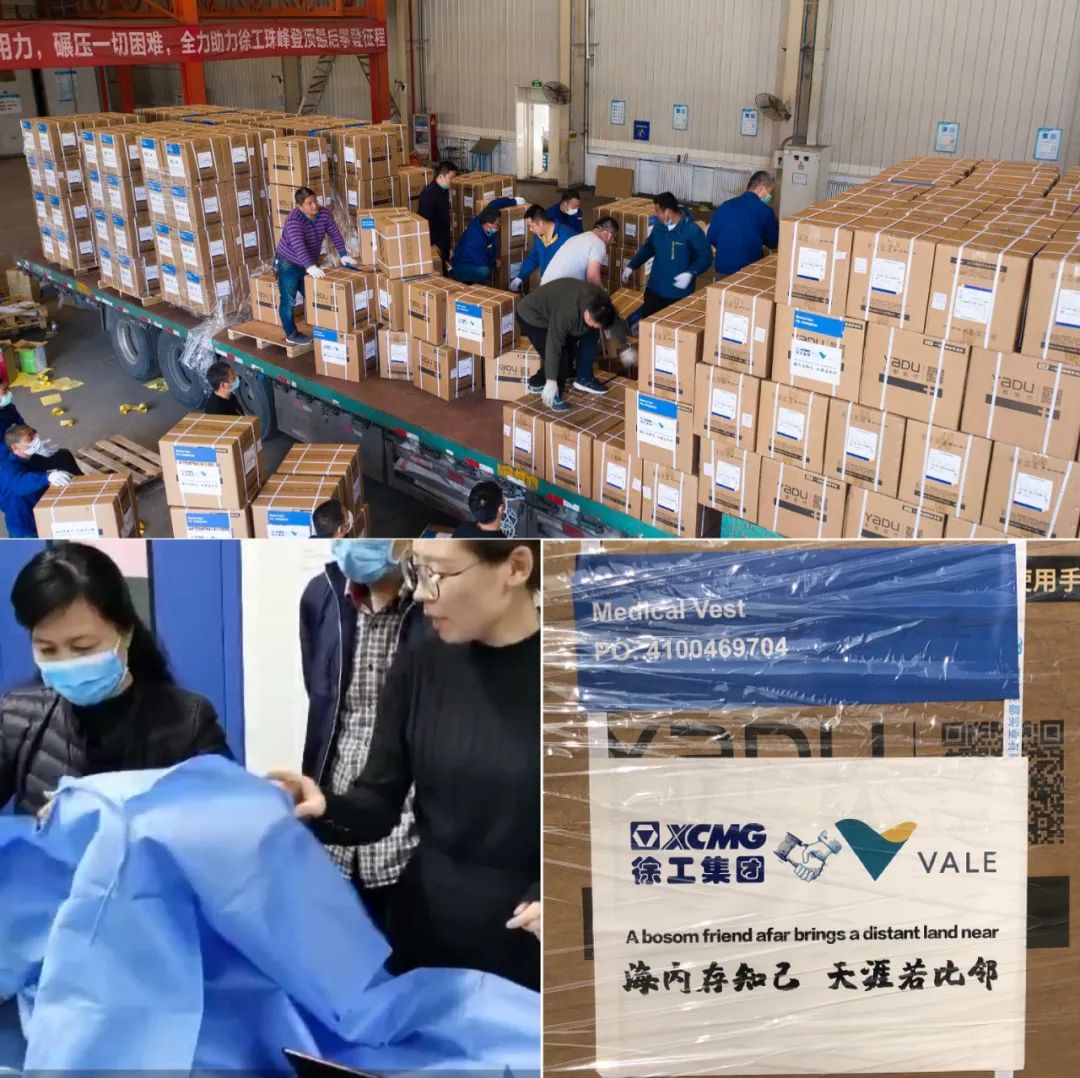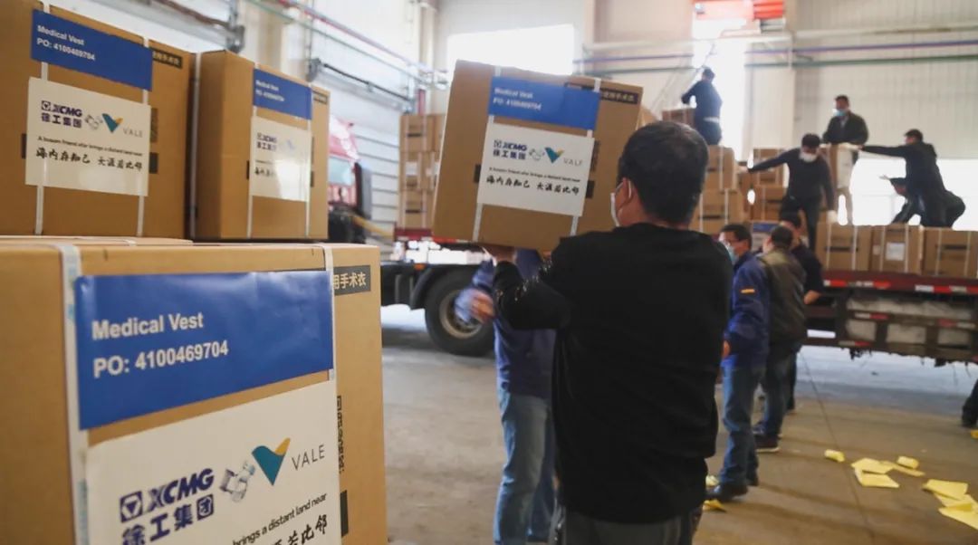 4月4日,400万只口罩和70万套手术衣中的近30吨首批采购物资,从中国徐州发出,紧急驰援巴西,这是中国工程机械的领军者——徐工,响应全球合作伙伴,世界第一大铁矿石生产和出口商——巴西淡水河谷公司的请求,协助其采购的首批医疗防疫物资。