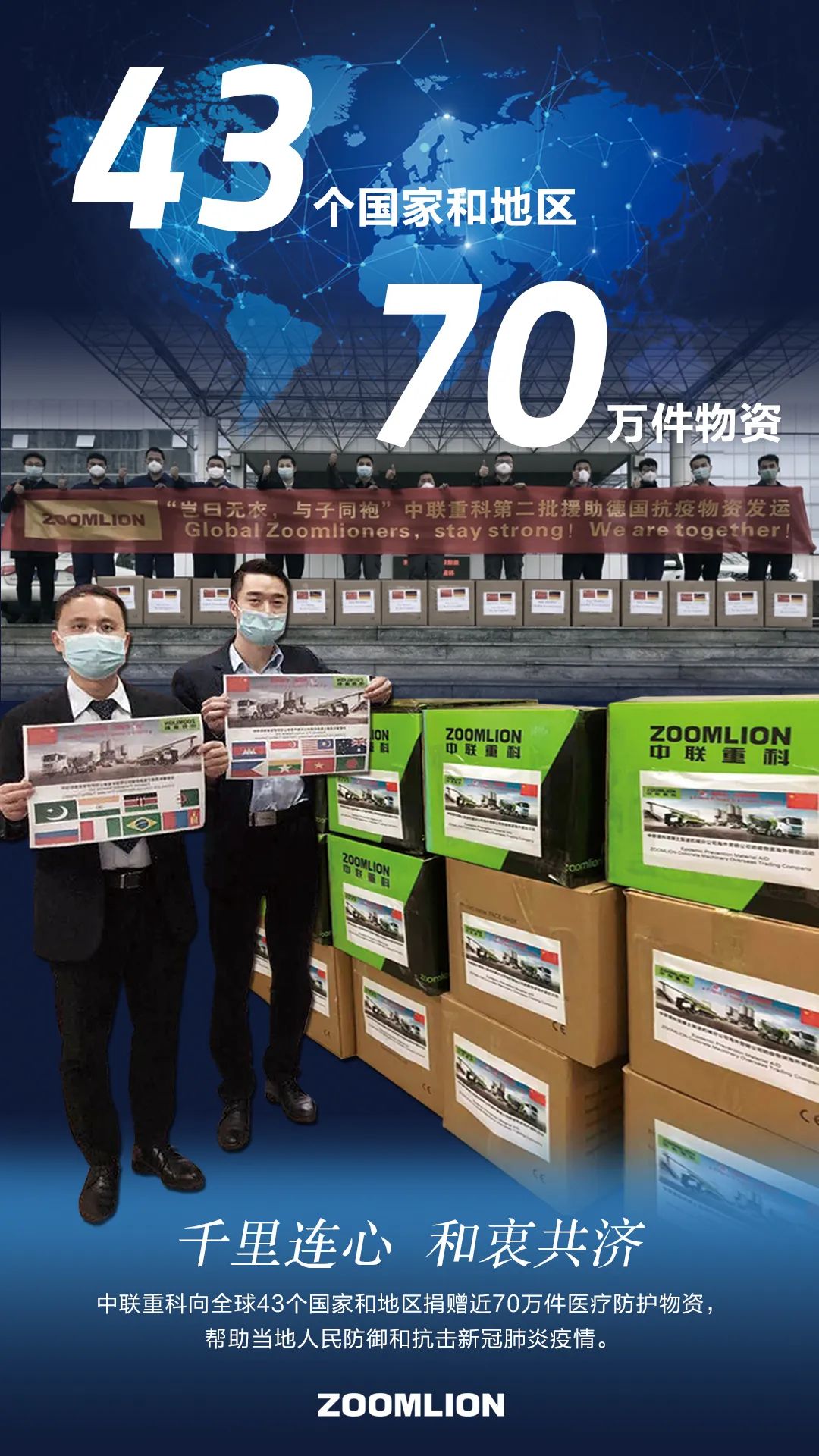 千里连心,和衷共济。3月31日,中联重科向全球43个国家和地区捐赠第三批近70万件医疗防护物资,帮助当地人民防御和抗击新冠肺炎疫情。本次捐赠覆盖亚洲、非洲、欧洲、北美洲、大洋洲等五大洲,覆盖范围广、国家和地区数量多,充分彰显了中联重科作为全球高端装备制造企业的社会责任和担当。