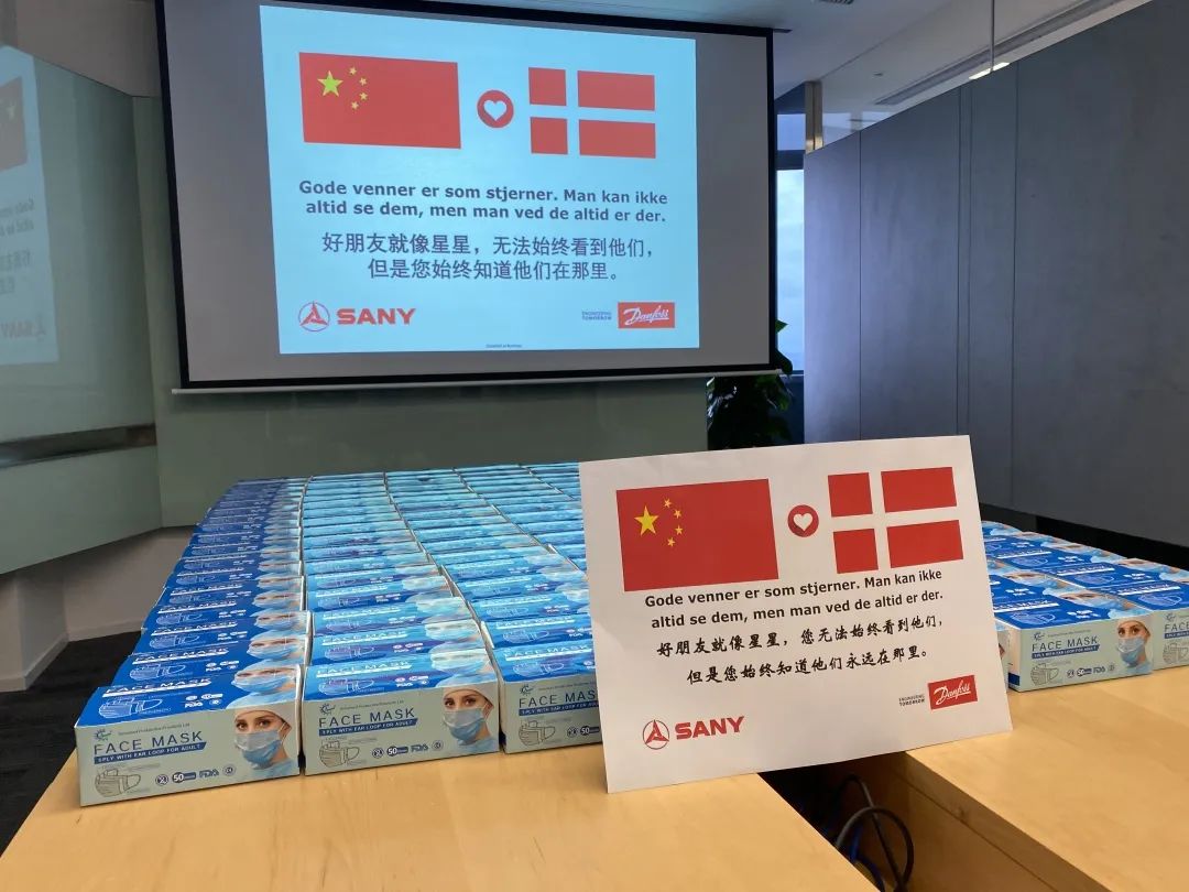 丹麦知名企业丹佛斯特意制作了一张印有中丹两国国旗、和两司Logo的贴纸,表达对三一的感谢。