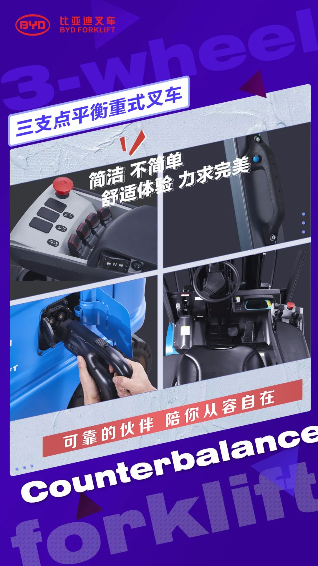 【研发实力】 比亚迪始终坚持“技术为王,创新为本”的理念,在电动叉车研发上投入技术研发人员150人,其中专项研究电器和液压的博士2名,硕士32名,国家211重点本科院校毕业生97名。具备同时研发平衡重式、托盘式、前移式、堆垛式四大系列纯电动叉车的能力。