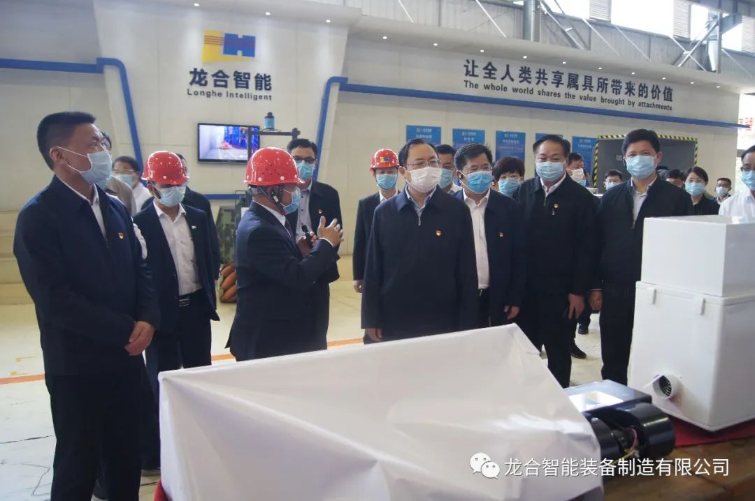 李书记对公司自主研发的全国首创智能无人装卸系统解决方案和高端属具制造等项目给予了充分肯定和高度认可,他指出,智能制造是先进信息技术与先进制造技术不断深度融合发展的产物,是制造业高质量发展的必由之路,同时这也是一项系统工程,推进智能制造要有系统思维,找准发力点和突破口。鼓励公司要继续努力,抓住机遇,顺势而为,加快推进智能制造项目落地,早日成为物流搬运装卸领域的国际冠军,为实现中国制造高质量发展贡献力量。