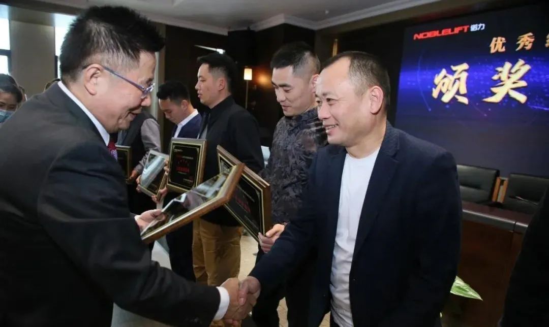 大会期间,董事长丁毅亲临会议现场,为年度优秀经销商代表颁奖并针对当前疫情,以及国内外经济形式,就诺力未来发展规划与经销商们展开充分交流。