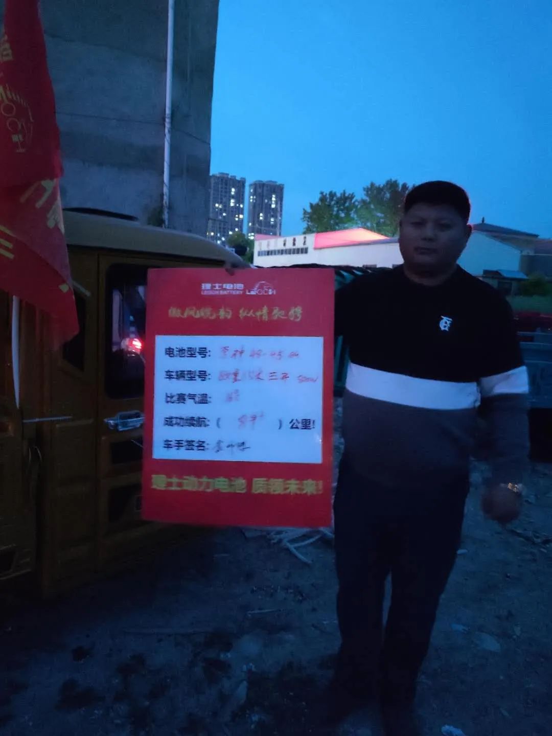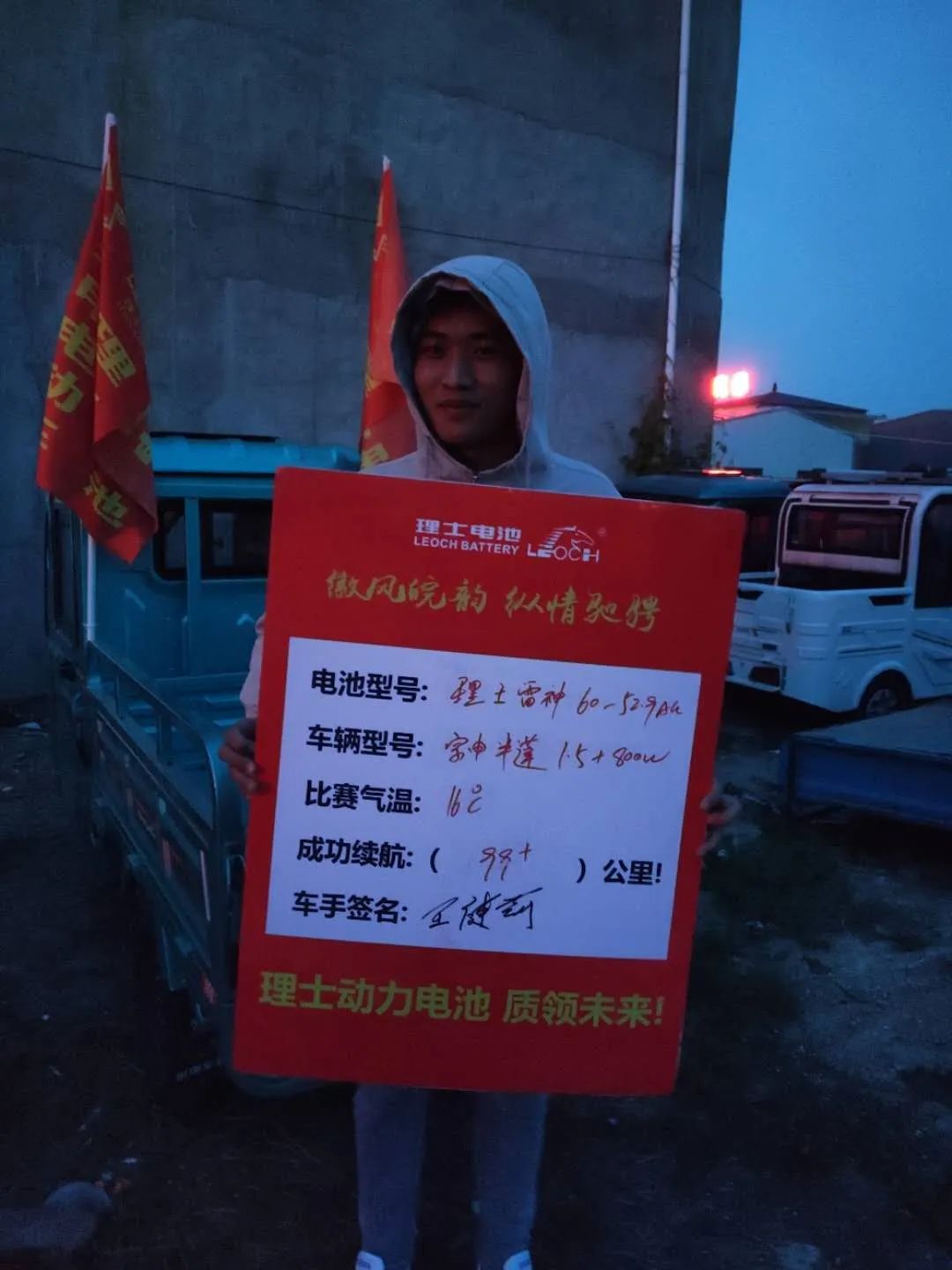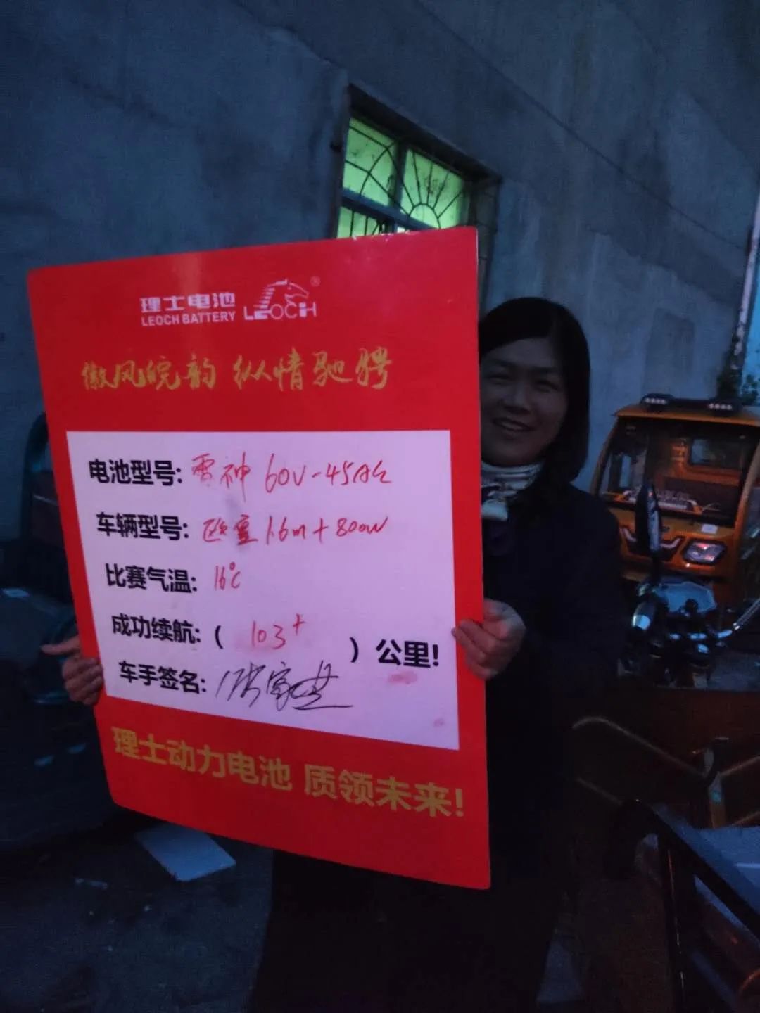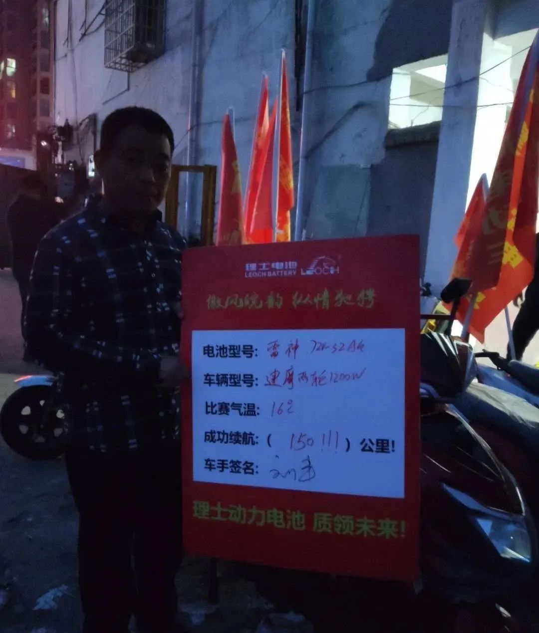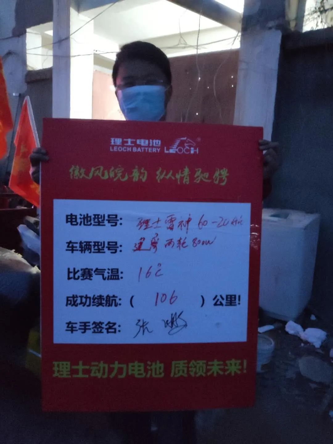 比赛结束后,每位车手都在最终里程牌上庄重的签上姓名,表示自己全程参与,并认可比赛的公平性。经过两天的比拼,理士雷神72V-32Ah电池取得150km的极限续航佳绩!