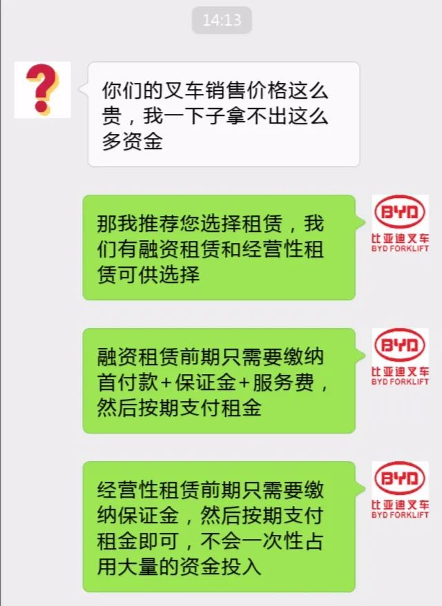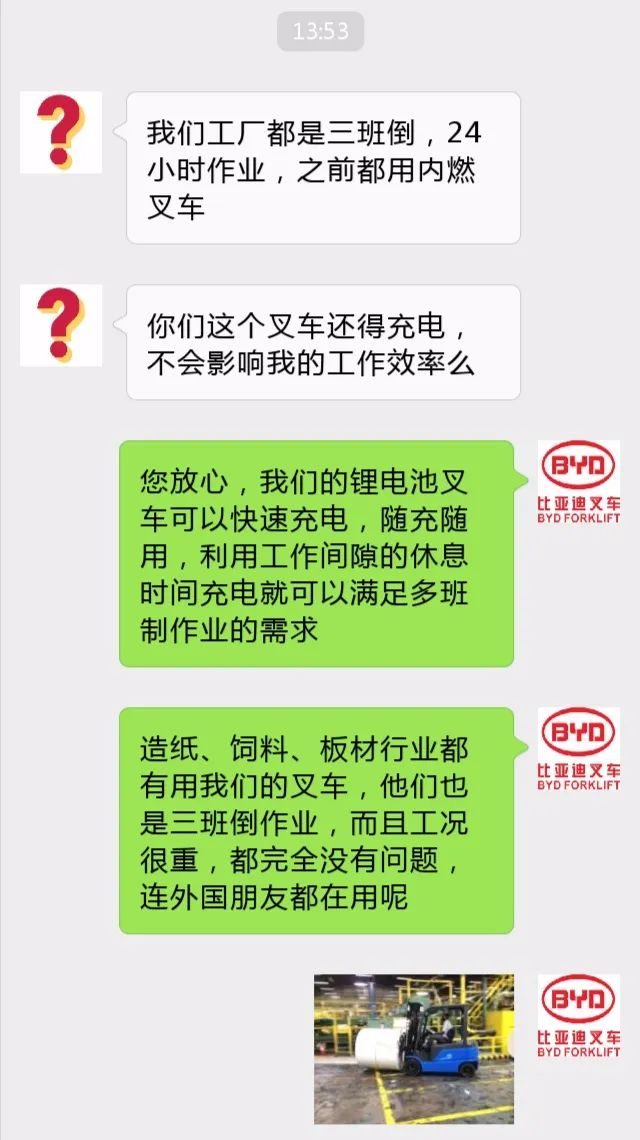 【服务宗旨】比亚迪叉车可按照不同客户的特殊需求设计符合客户要求的产品,产品设计灵活、多样。为了让比亚迪叉车可以更好的服务于客户,我们配备了专业的销售团队,为每一位客户提供专业的服务。“客户至上”是比亚迪叉车永久不变的服务宗旨。比亚迪遍布华北、华中、华东、华南和西部大区的售后服务网点和高素质的服务工程师队伍,保证了快速、高效的售后服务。