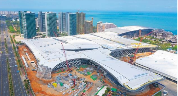 海南会展中心二期项目空间布局特殊, 安装工艺复杂,屋顶高度最高44米,跨度最宽60米,是海南目前体量最大的钢结构工程。