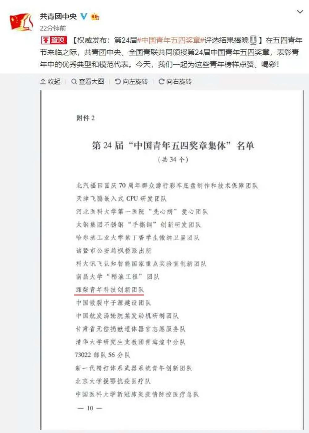 在五四青年节来临之际,共青团中央、全国青联共同颁授第24届“中国青年五四奖章”,表彰青年中的优秀典型和模范代表。潍柴青年科技创新团队荣获第24届“中国青年五四奖章集体”,这也是山东省唯一一支获此殊荣的常规类青年团队。