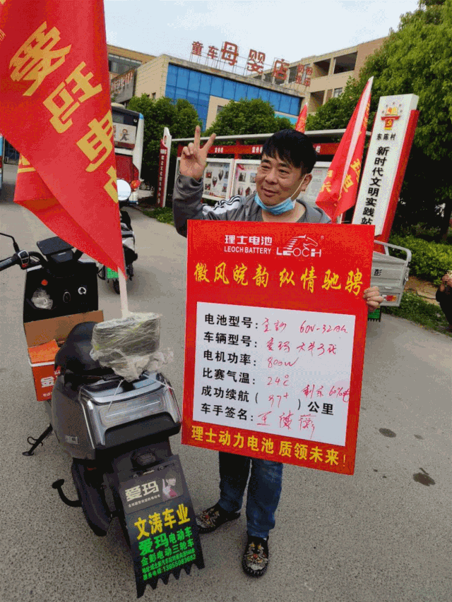 4月25日,理士动力电池“骑行中国,纵情驰骋"系列拉力赛来到安徽滁州,本场比赛中,理士雷神电池联合爱玛电动车+金彭三轮车两大战略合作品牌,共同取得了优秀的续航成绩!