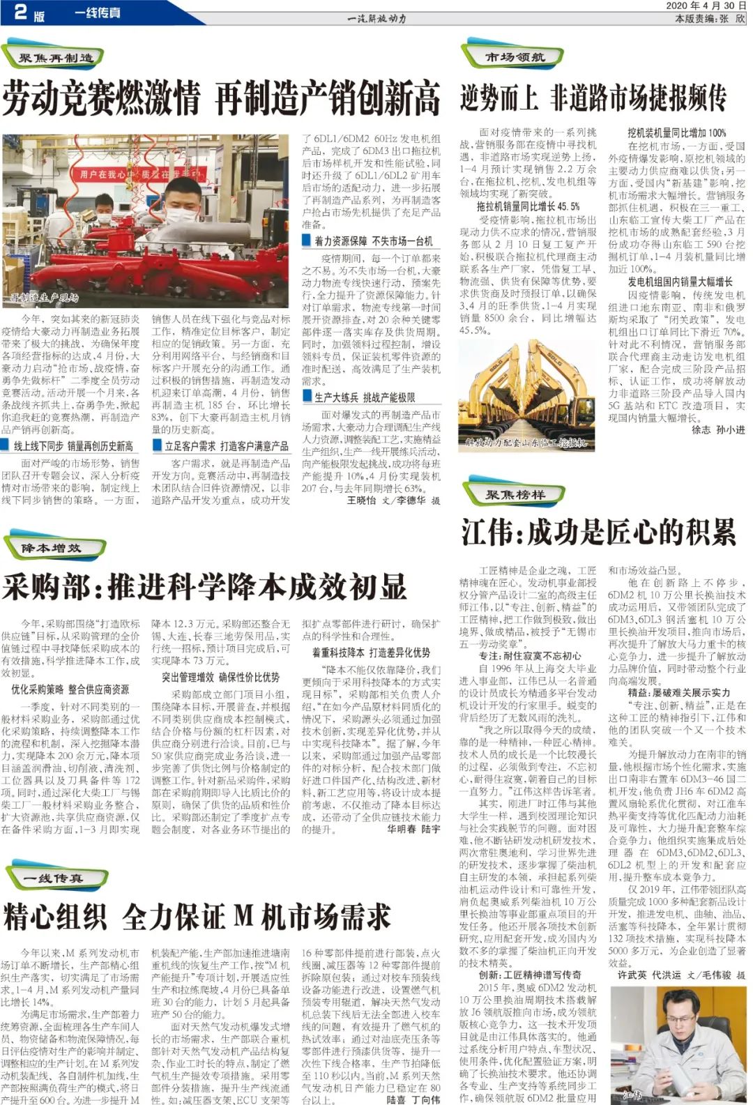 2011年锡柴进入第四次创业的新征程,提出了建设具有核心竞争力的“自主锡柴、实力锡柴、和谐锡柴”的奋斗目标。工厂正以“争第一、创新业、担责任”为核心理念,开拓创新,昂扬奋进,打造“民族品牌,高端动力”,为推动一汽自主事业,促进汽车工业又好又快发展,实现人·车·社会和谐发展做出新的贡献。