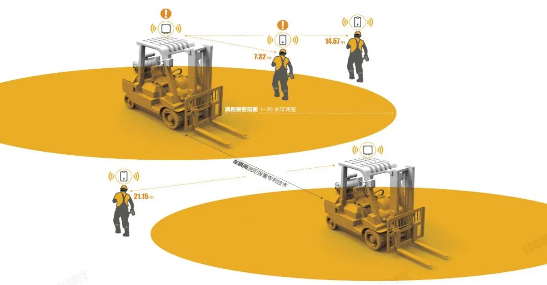 系统在不依赖外部网络覆盖的情况下,自主探测作业车辆周边接近的车,人,物等危险源。按照远、中、近3种预警距离发出不同的声光报警,给司机实时提醒,最大限度地降低人车交叉作业事故发生。