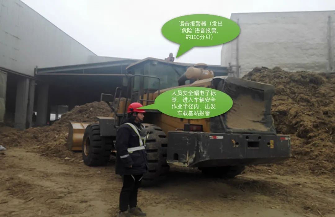 该系统硬件主要由车载微基站、具有人员震动提醒功能的电子标签、可定制的声光报警器及速度传感器组成。