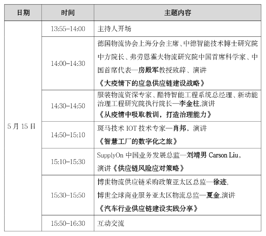 本次活动将从5月15日下午两点开始,除了首发嘉宾之外,还有酷特、斑马技术、博世、SupplyOn等知名企业加入!各位嘉宾携重磅资讯齐聚CeMAT ASIA线上下午茶,将深层剖析大疫情之下,应急供应链该如何厚积薄发。