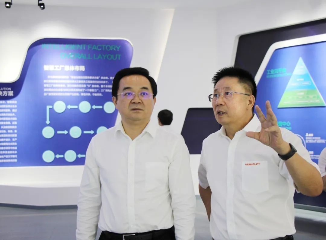 丁毅董事长陪同高兴夫副省长一行参观了诺力四期智能工厂忙碌的现场,并详细汇报了公司今年的生产经营情况。