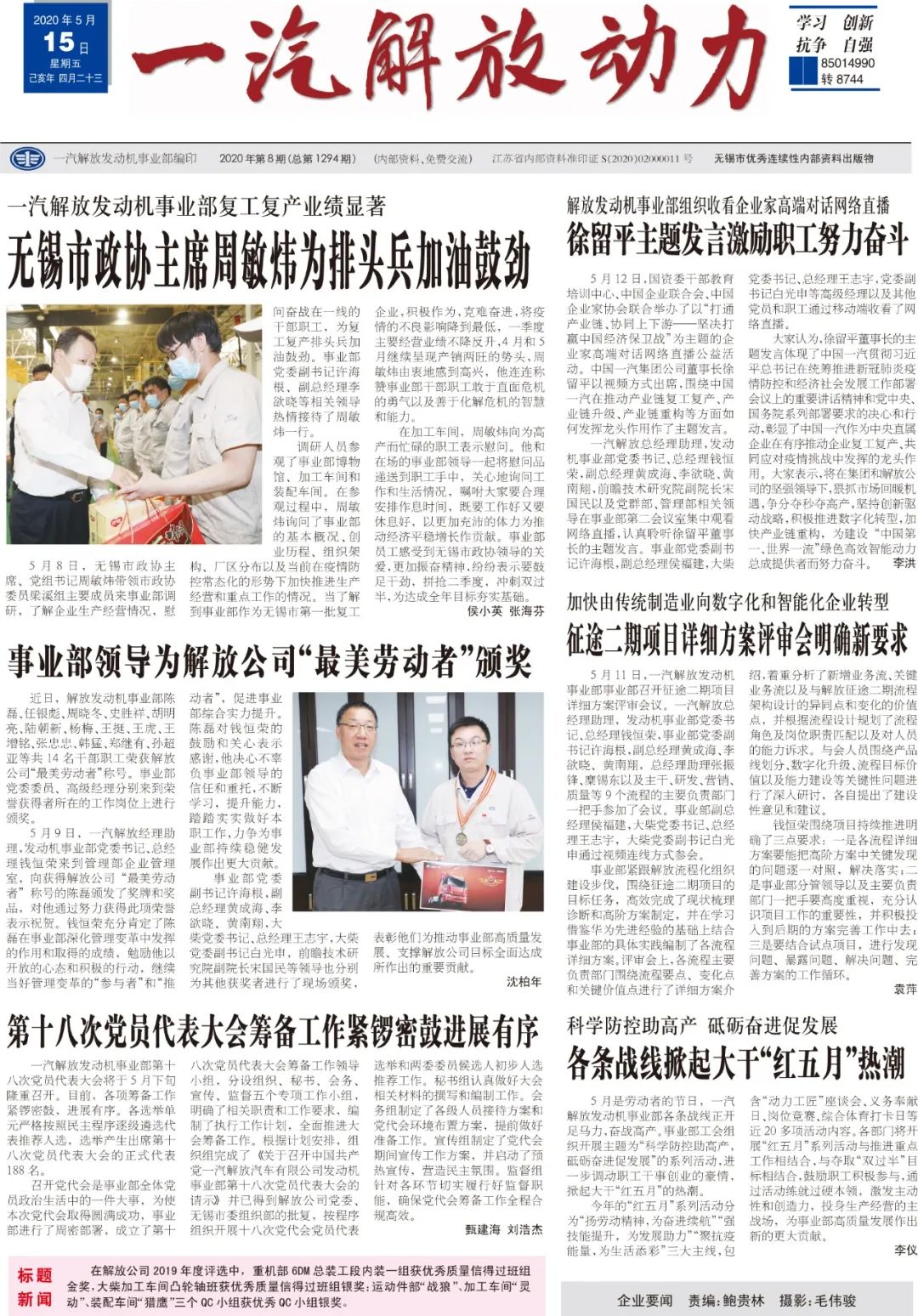 一汽解放汽车有限公司无锡柴油机厂(下简称“锡柴”)位于江苏省无锡市,是中国第一汽车集团公司下属全资企业。工厂创建于1943年,经过70年的发展,现占地面积67万平方米,员工3500余人,总资产63.5亿元,品牌无形资产102.29亿元。现拥有两大发动机基地、发动机再制造基地和改装车研制基地四大厂区,形成装备国际领先、管理国内领先、质量行业领先的生产体系,具备60万台柴油机和15000辆改装车的年产能力。