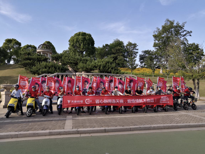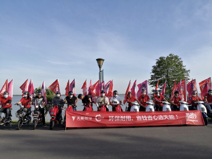 本次活动天能锂电与小刀电动车强强联合,15辆参赛电动车全部配备天能锂电,于上午11点在博爱路小刀旗舰店出发,整齐的队伍,飘扬的刀旗,在初夏的常州形成了一道靓丽的风景线。在拉力赛过程中,气温逐渐上升到了35摄氏度,严峻的高温不仅考验着我们参赛选手的体力与耐力,也考验着天能锂电在高温下的性能与安全性。