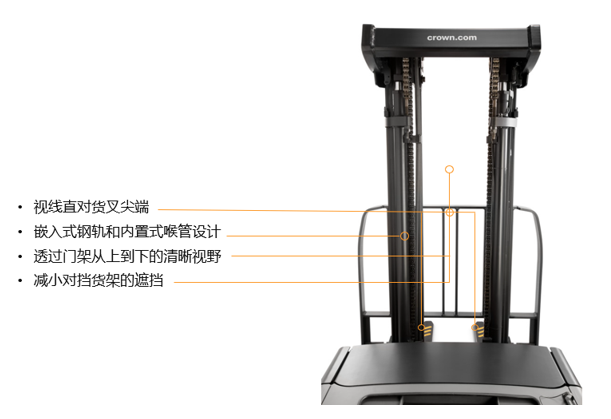 操作时视线正对货叉尖端