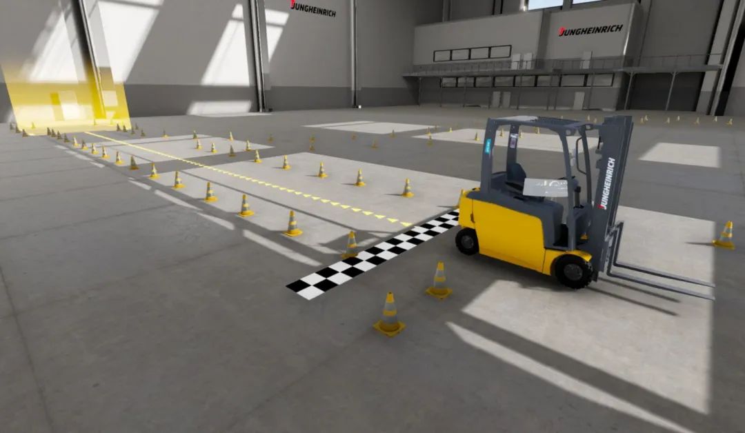叉车模拟器的工作原理与飞行模拟器类似,飞行员会使用它进行练习。