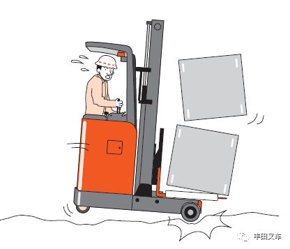 丰田小TIPS:在冷库、水产等路面有积水的工况下启动站驾式前移式叉车时,需要在缓慢起步的同时调整方向,禁止急刹车操作。