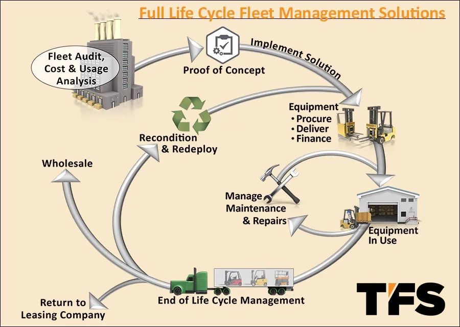 TFS是一家独立于品牌的车队管理公司,专门管理叉车和相关设备。TFS为《财富》 1000强公司以及北美的其他大型制造和分销公司提供交钥匙车队管理服务。通过更好的车队管理,TFS可以在其客户的物料处理支出上节省超过25%的生命周期成本。TFS的优势: