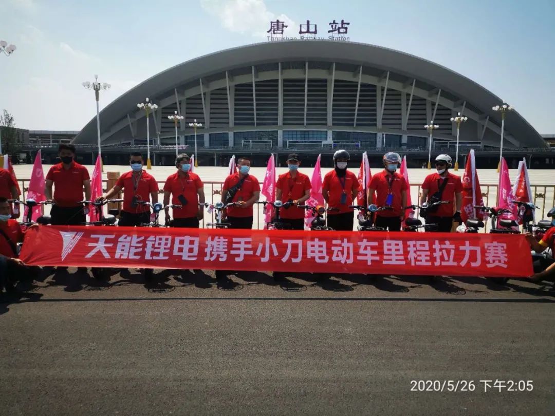 车队按照计划,在主城区及郊区进行骑行,充分模拟了用户的真实骑行状态。通过近三个小时的不间断骑行,参赛车辆以21km/h的平均时速跑出了63公里的好成绩,并且均还有不少的剩余电量,再次刷新了天能锂电在唐山市场的新纪录,赢得了当地市场从业同仁的赞誉,使天能锂电的“长跑”性能得到了唐山消费者的一致认可。