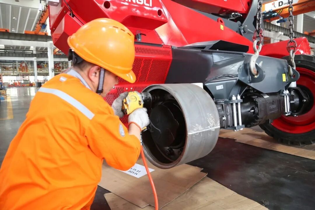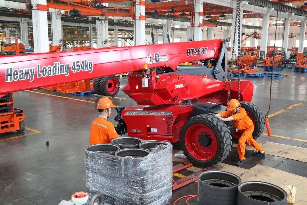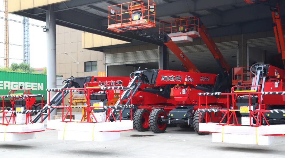 换上特制轮胎,鼎力大载重臂式系列准备装柜