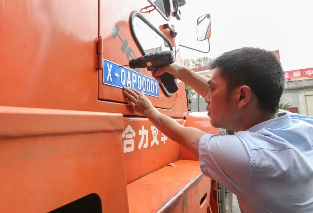 6月9日,在中车贵阳车辆有限公司,随着牌号为“X-QAP00001”的特殊号牌安装完毕,一辆合力叉车成为贵阳市首辆拥有“环保身份证”的非道路移动机械。