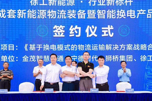 发布会现场,徐工汽车与多方战略伙伴签订合作发展协议。徐工重卡与国内上下游龙头企业签订了三项战略合作协议,携手共同推进新能源换电项目的落地。
