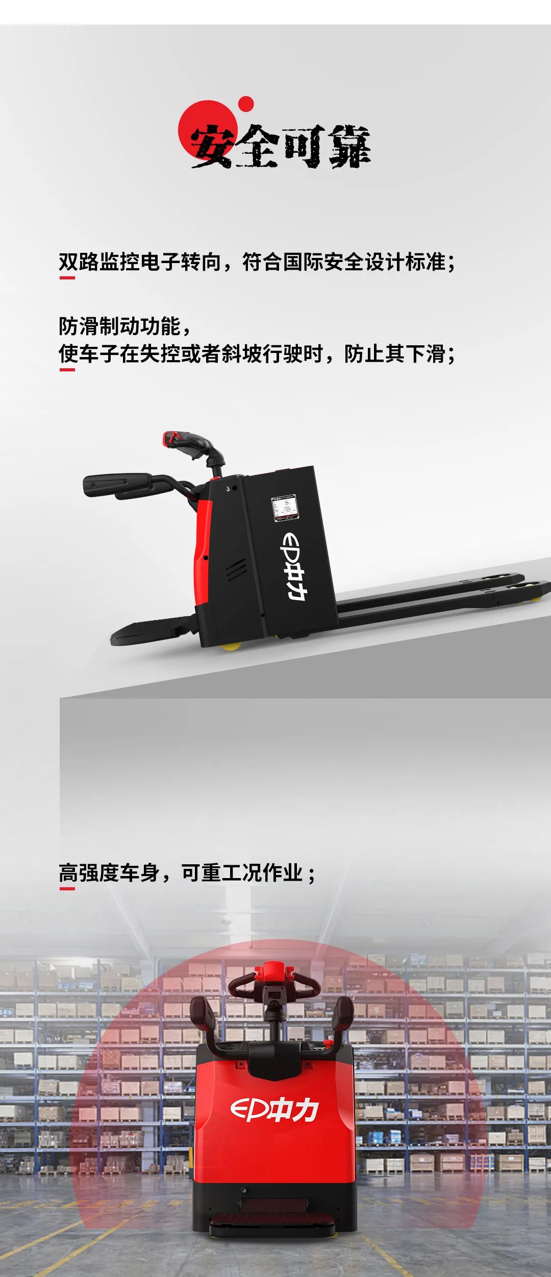 杭州中力搬运设备有限公司为浙江中力机械股份有限公司下属全资子公司,浙江中力机械股份有限公司(EP EQUIPMENT) 是一家靠产品驱动发展、创新引领变革,旨在打造工业物流4.0的全球化科技企业,专业从事电动仓储设备、智能搬运机器人及叉车开发、制造及服务。