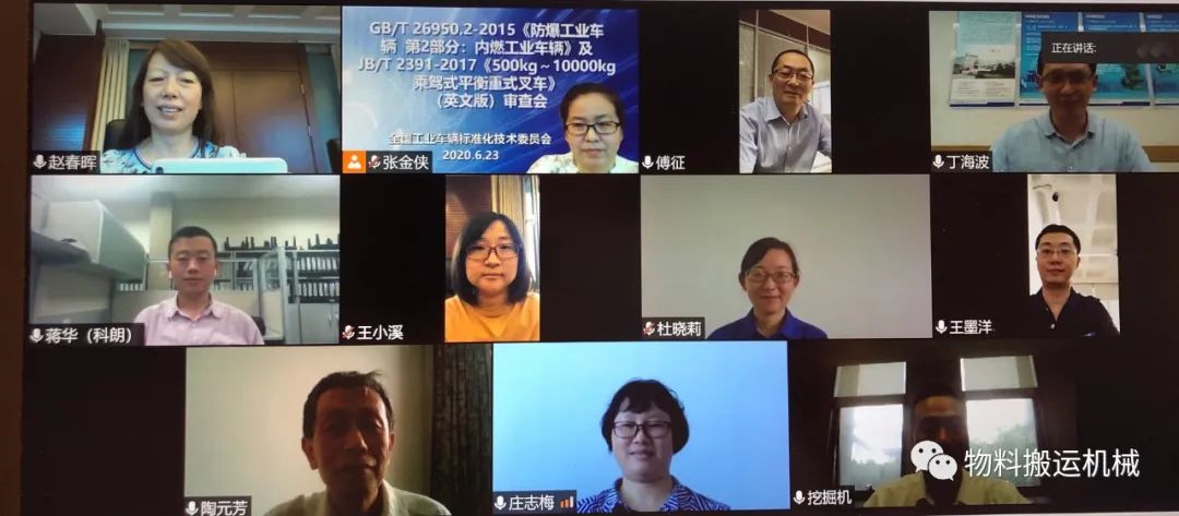 2020年6月23日,全国工业车辆标准化技术委员会(以下简称“标委会”)组织召开了GB/T 26950.2-2015《防爆工业车辆 第2部分:内燃工业车辆》及JB/T 2391-2017《500kg~10000kg 乘驾式平衡重式叉车》(英文版)专家视频审查会,参加专家审查会的有工业车辆标委会的部分委员、标准负责起草单位专家、行业专家及外语专业人员共计9个单位11名代表。